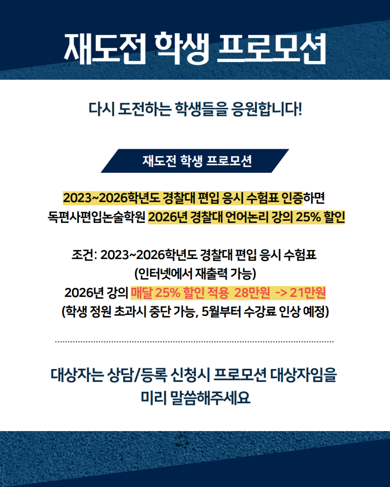 독편사편입논술학원 2026년 경찰대 언어논리 강의 25% 할인